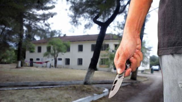 Στη συνέχεια κραδαίνοντας το ένα από τα δύο μαχαίρια, απείλησε τον υπεύθυνο της Δομής Φιλοξενίας ώστε να τον αποτρέψει να καλέσει την αστυνομία και να καταγγείλει την πράξη του.